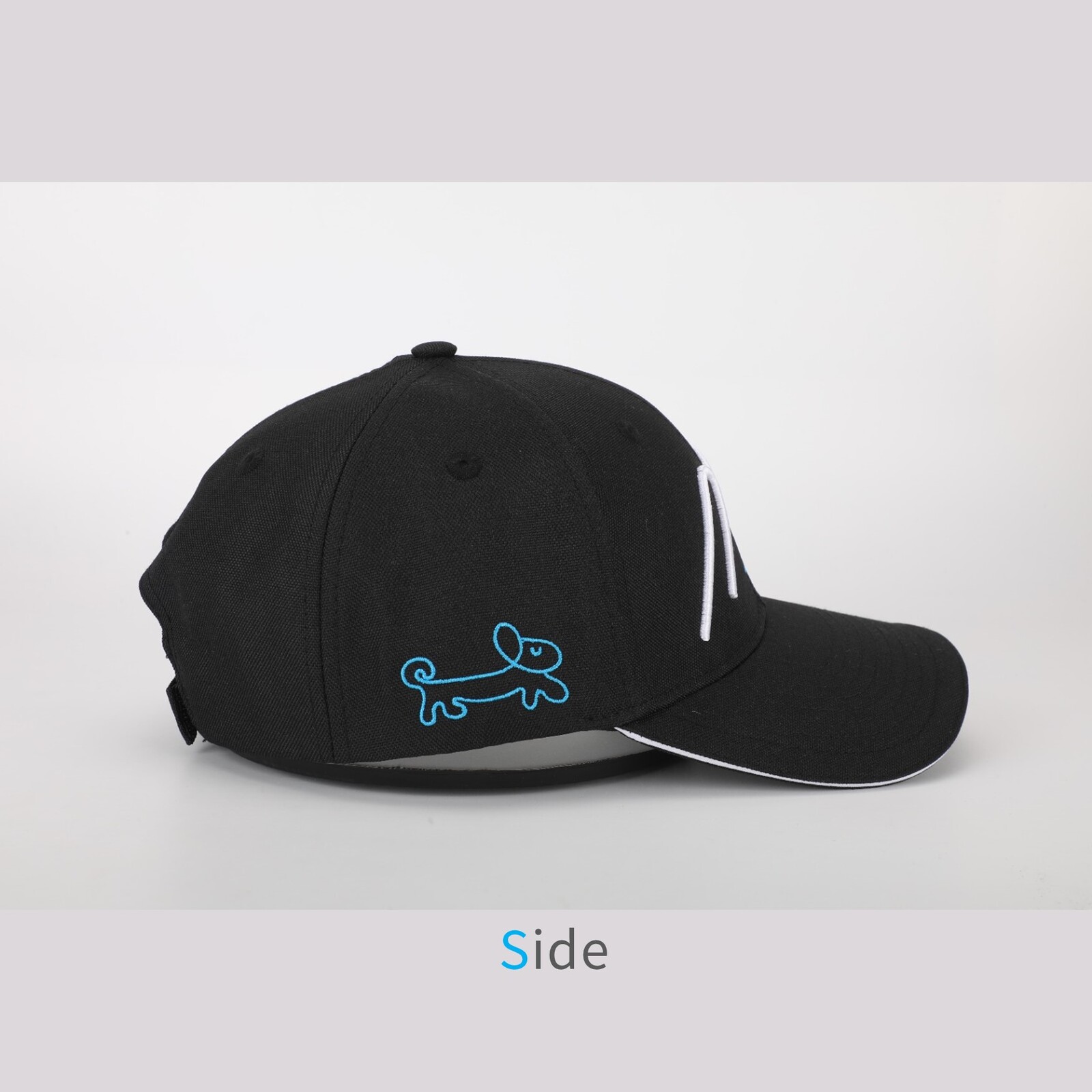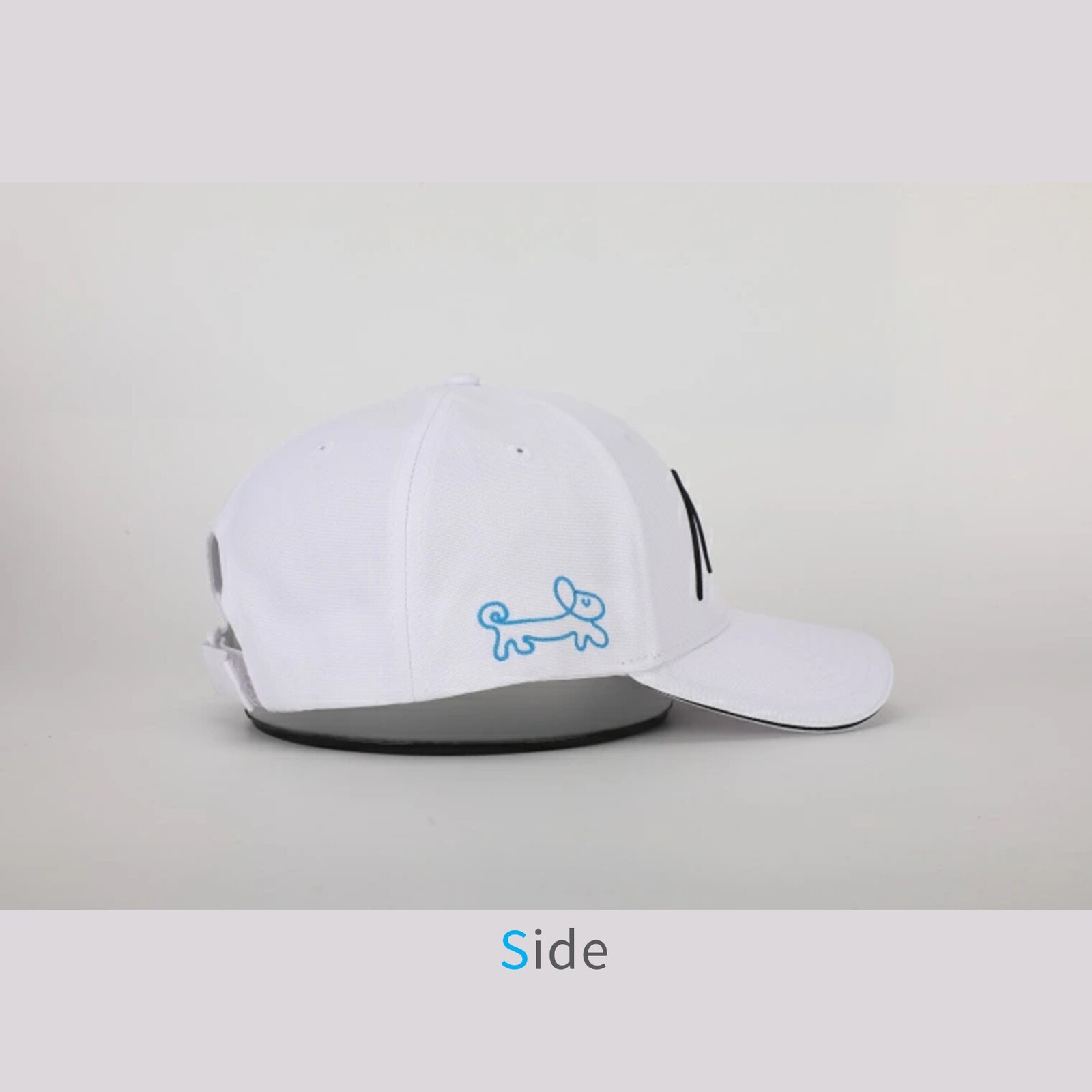 正面にはHakusanロゴの3D立体刺繍、右サイドには姉妹店1stDogCafeのワンちゃんロゴの刺繍(こちらは通常の刺繍)が施されています。型崩れしにくいしっかりしたポリエステル生地を採用している帽子なので、お洗濯しても型崩れしにくいです。