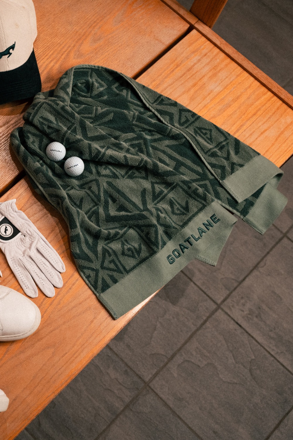 ゴートレーン・ゴルフタオルは、シグネチャープリントが特徴で、存在感のあるアイテムであると同時に、コースでの実用的な必需品です。プレミアムコットン100%で作られており、軽量でコンパクト、そして優れた吸水性で、必要な時にいつでも使えます。